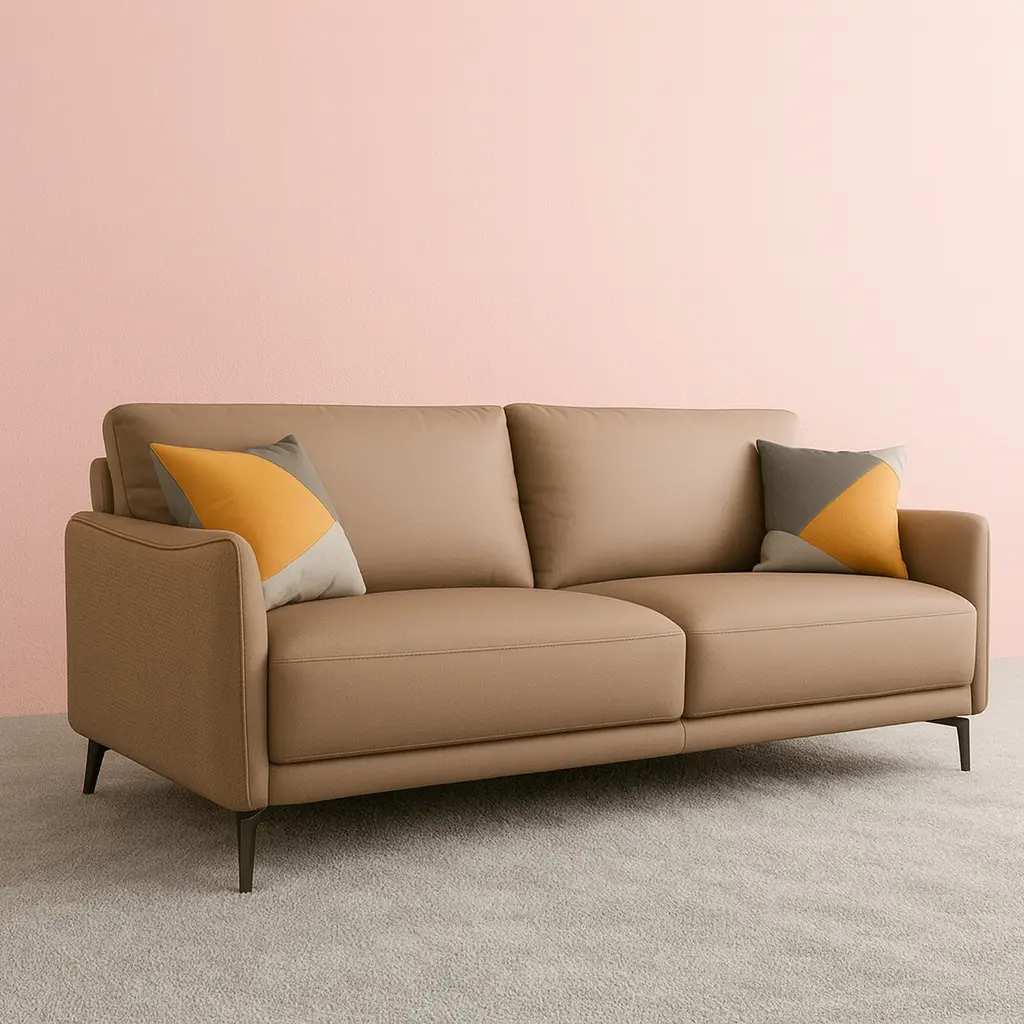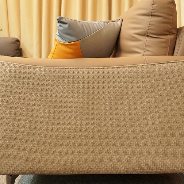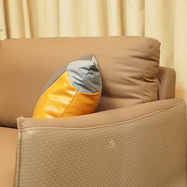 Khung gỗ tự nhiên kết hợp đệm mút chất lượng cao và vỏ bọc da công nghiệp giúp sofa duy trì độ bền ổn định theo thời gian. Bề mặt dễ lau chùi, phù hợp với gia đình có người lớn tuổi hoặc trẻ nhỏ.